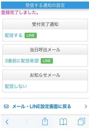 受付完了通知や当日呼出通知をLINEで受け取ることができます。