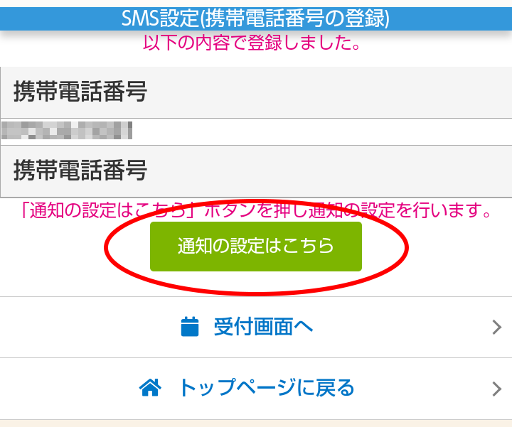 4.携帯電話番号を入力し、「登録確認」ボタンをクリックします。