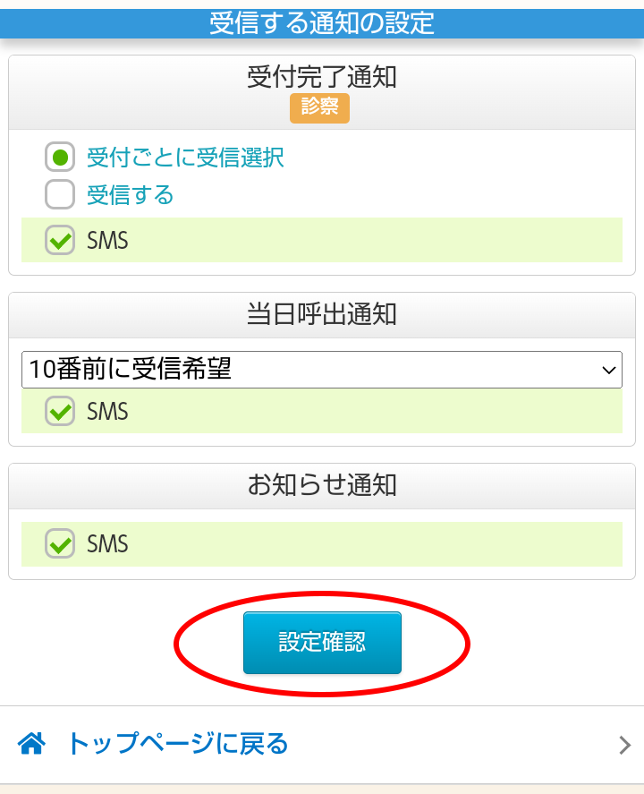 7.設定を確認又は変更し、「設定確認」をクリックします。